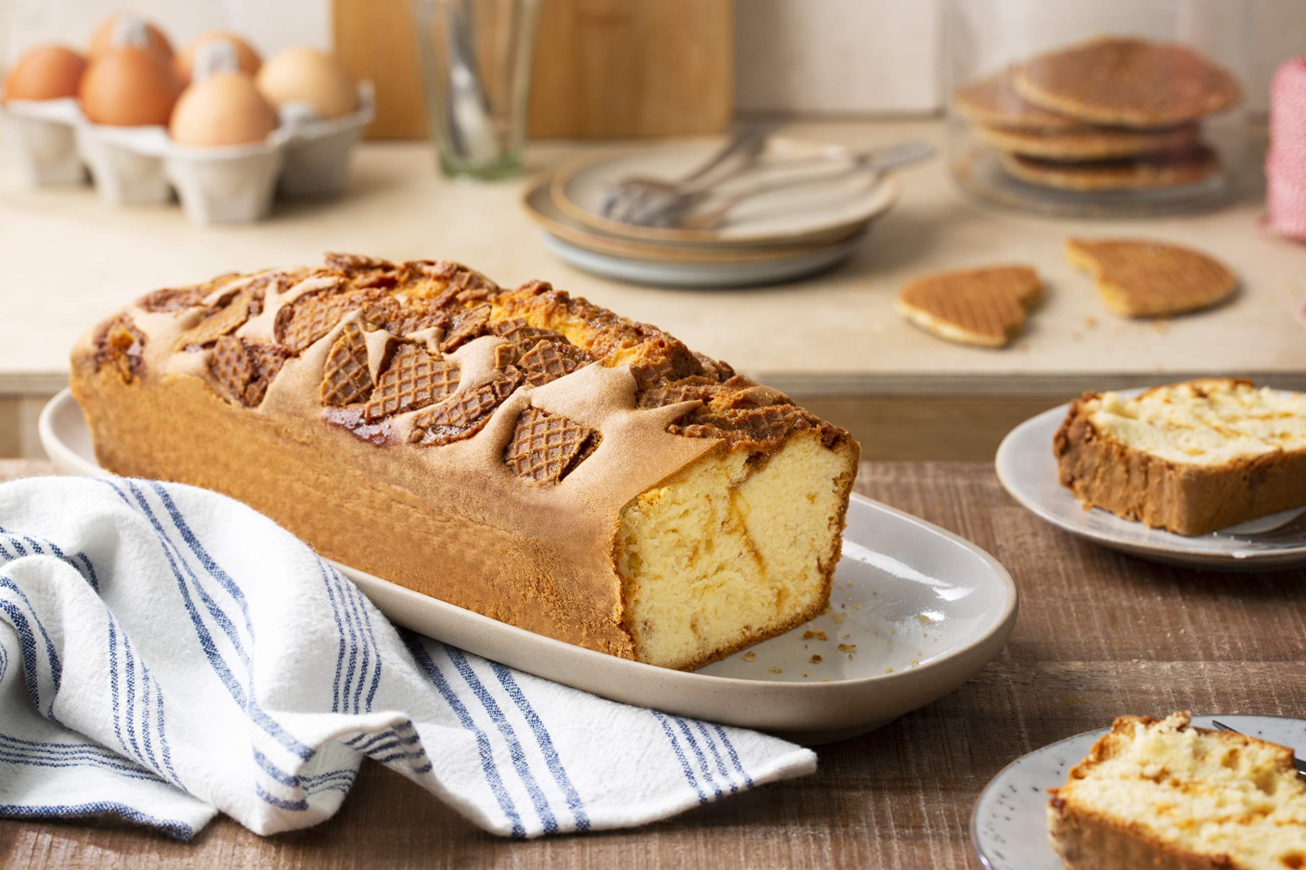 Koopmans Stroopwafel Cake Mix is a delicious cake with stroopwafel (Dutch Syrup Waffles) flavour and pieces of caramel.