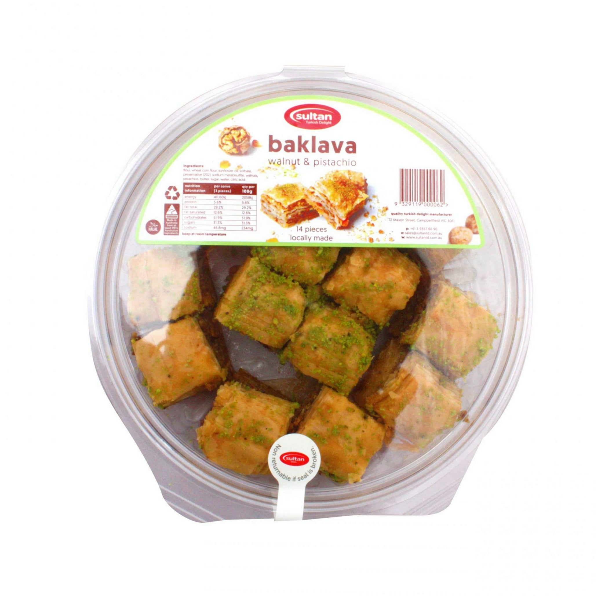 Sultan Sweets Baklava Walnut & Pistachio 14 Pieces ( BB 11/01/2026 )