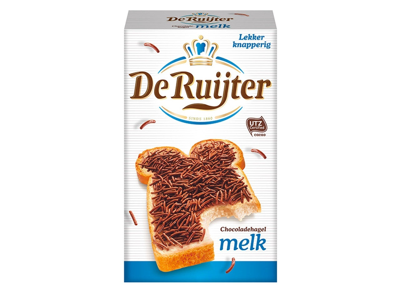 De Ruijter milk chocolate flakes are one of the best sweet bread toppings ever. They are made of very fine milk chocolate with a high cacao share. Original De Ruijter chocolate flakes do not only taste like chocolate they are made of real chocolate and therefore more healthy than many other sweet bread toppings. Of course De Ruijter milk chocolate flakes go with all sorts of flummeries, custards and other desserts. When you like sweet bread toppings you must try De Ruijter milk chocolate flakes. They can be used miscellaneously and will always fill you with enthusiasm. De Ruijter milk chocolate flakes are a healthy alternative to many chocolate pastes.
