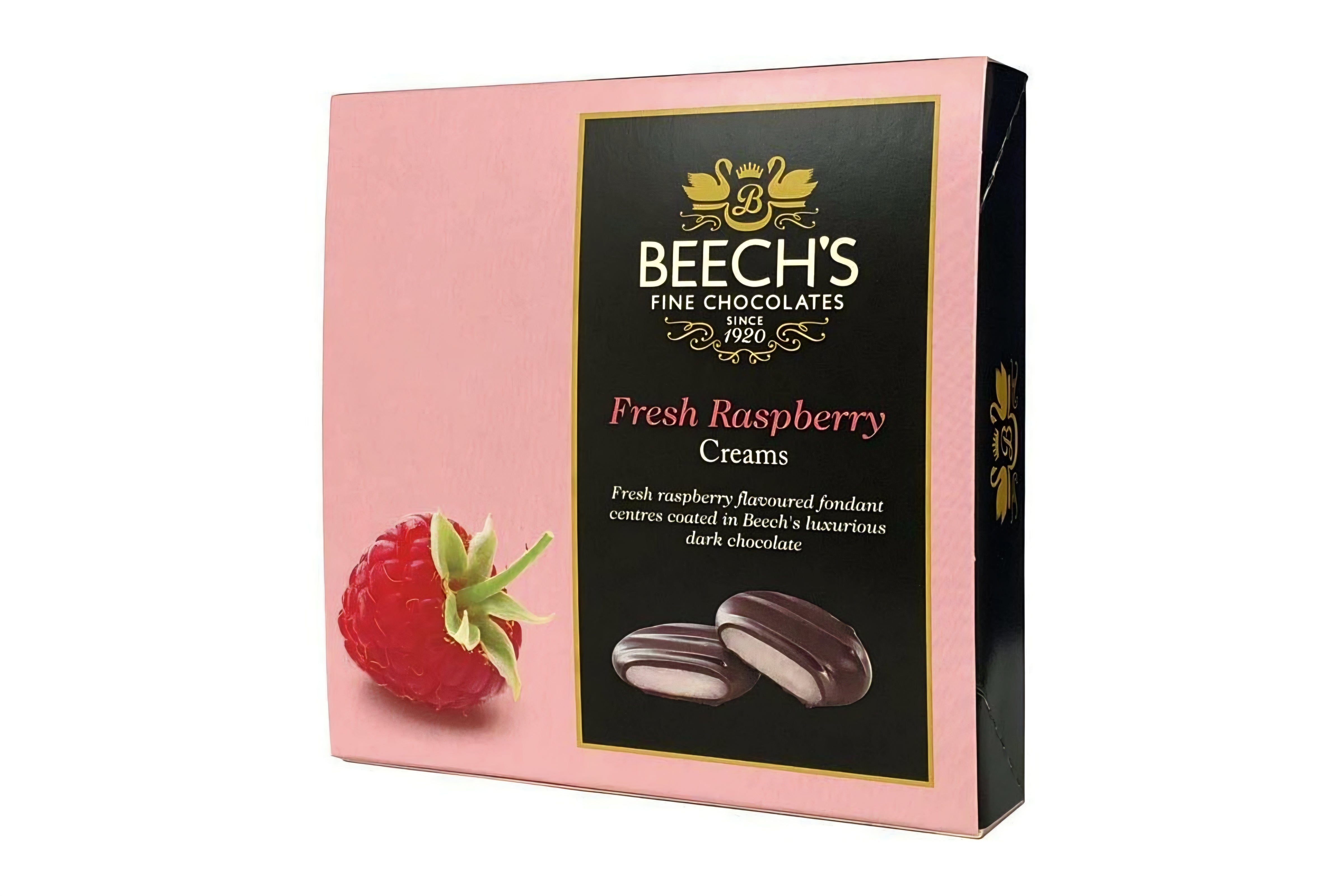 Beech's Fresh Raspberry Fondant Creams. Made to a traditional recipe using only natural flavour and Beech's luxurious dark chocolate.